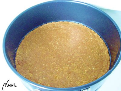 9. Verter esta mezcla sobre la base de galletas y meter en la nevera.