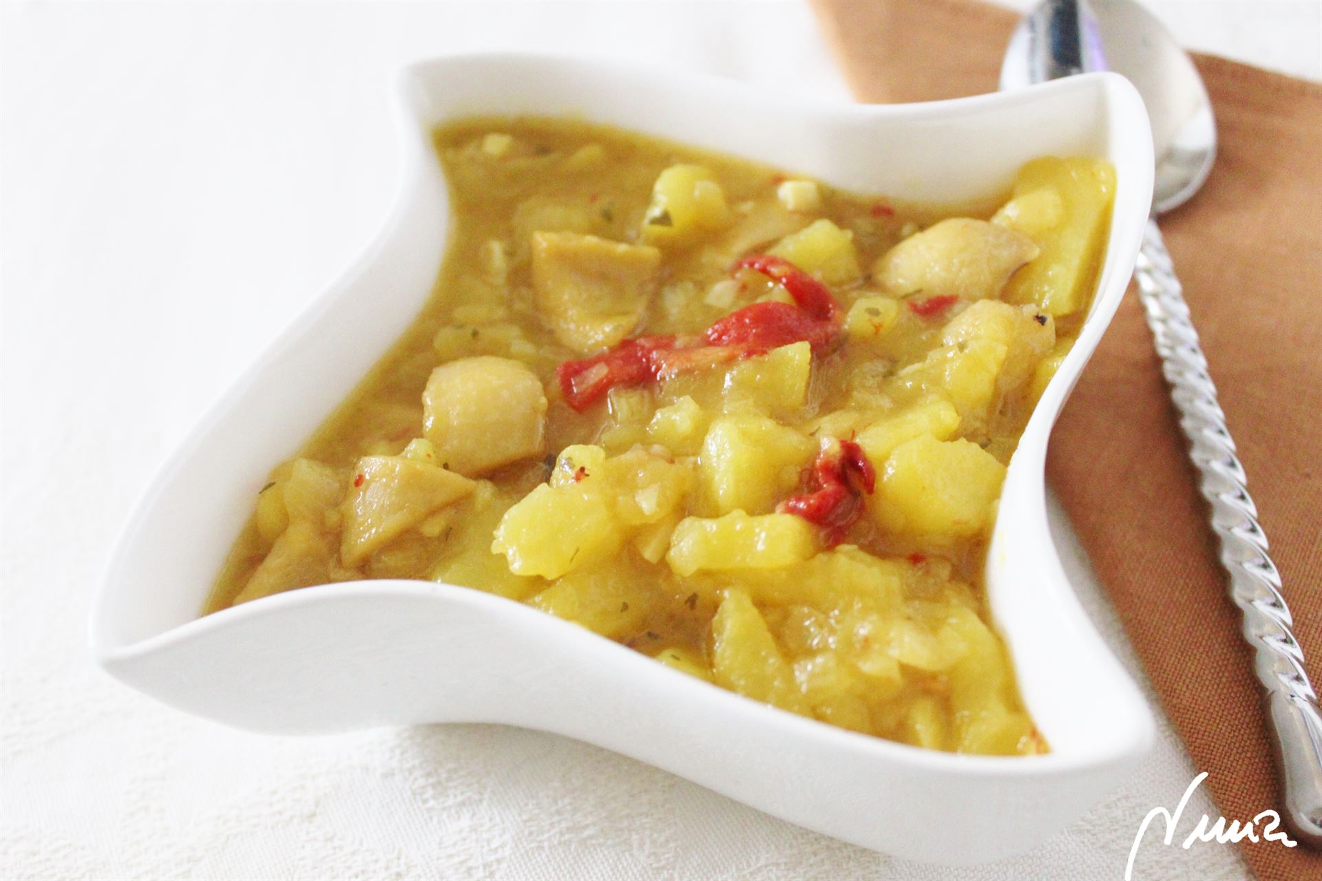 11. Cocer hasta que la patata esté tierna, incluso si se deshacen algunos trocitos queda mejor, pues espesaría la salsita.