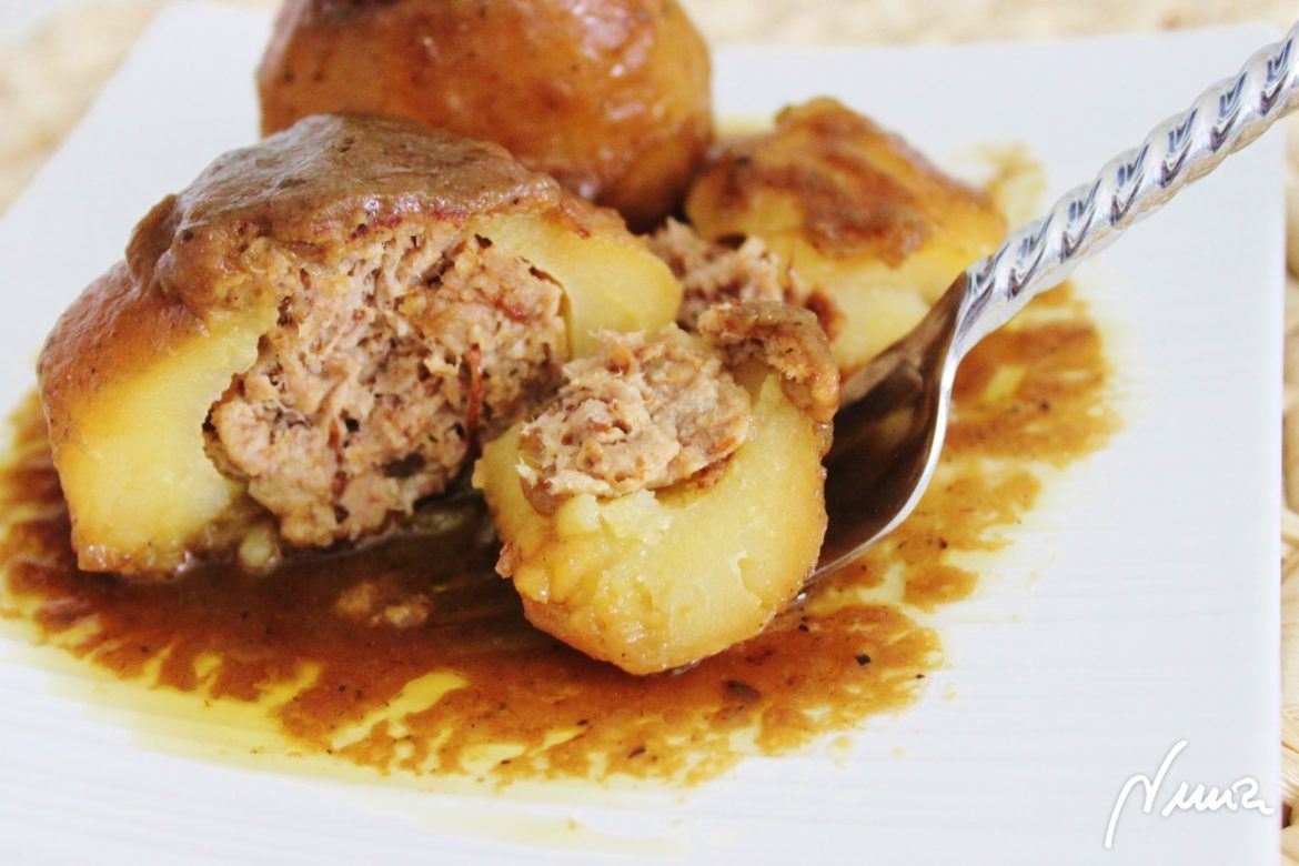Estas patatas son mi vicio! tánto que suelo hacer carne guisada de sobra para luego poder rellenar unas patatitas. Calla que ahora mismo voy a añadir algo a la receta… debe ser guiso de ternera!